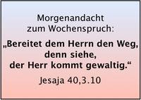 Dem Herrn ist der Weg nicht bereitet worden. Das konnte ihn aber nicht hindern. Es steht uns aber gut zu Gesicht, ihm den Weg zu ebnen, damit er unter uns etwas ausrichten kann und wir ihm damit die Ehre geben, indem wir auf sein Entgegenkommen angemessen antworten.