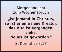Ist jemand in Christus, so ist er eine neue Kreatur; das Alte ist vergangen, siehe Neues ist geworden.